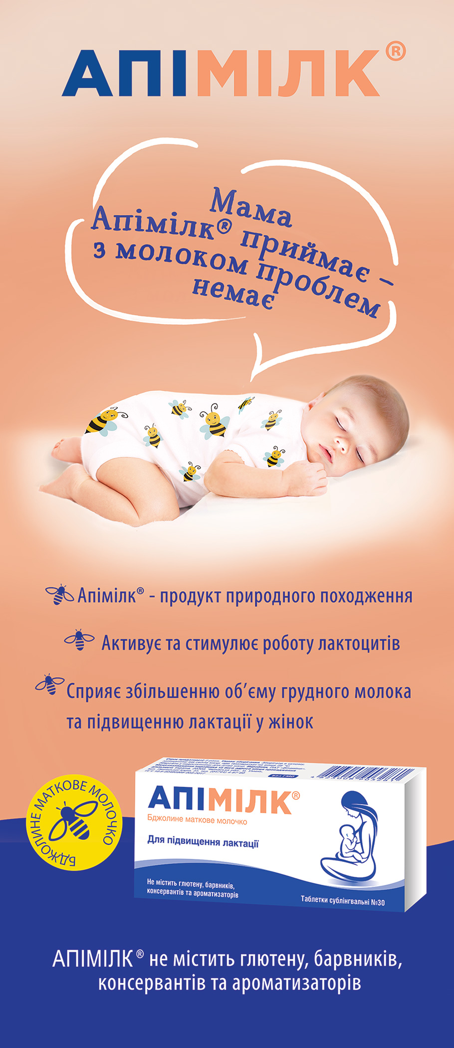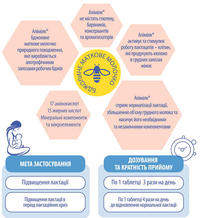 АПІМІЛК® сприяє збільшенню кількості грудного молока та підвищенню лактації.
