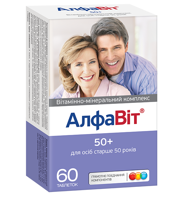 Вітамінно-мінеральний комплекс для осіб старше 50 років для компенсації нестачі речовин пов’язаної з віковими змінами в організмі.